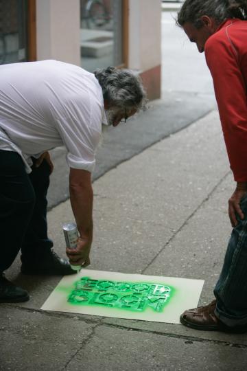 Stamping the route from Fő tér through Irokéz Gallery to the Gallery of Szombathely